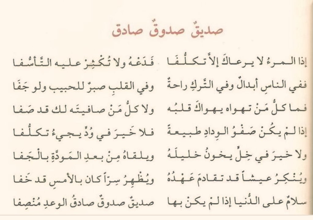 O Xrhsths Zainab Sto Twitter الصداقه تحتاج وصف الصداقة وصفات الصديق أفضل وصف للإمام الشافعي رحمه الله رحمة واسعة في أبياته المشهورة