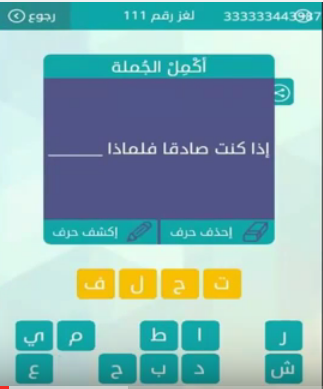 اجابة سؤال اذا كنت صادقا فلماذا لغز رقم 111 من لعبة وصلة فى المجموعة الثالثة عشرة صقور الإبدآع