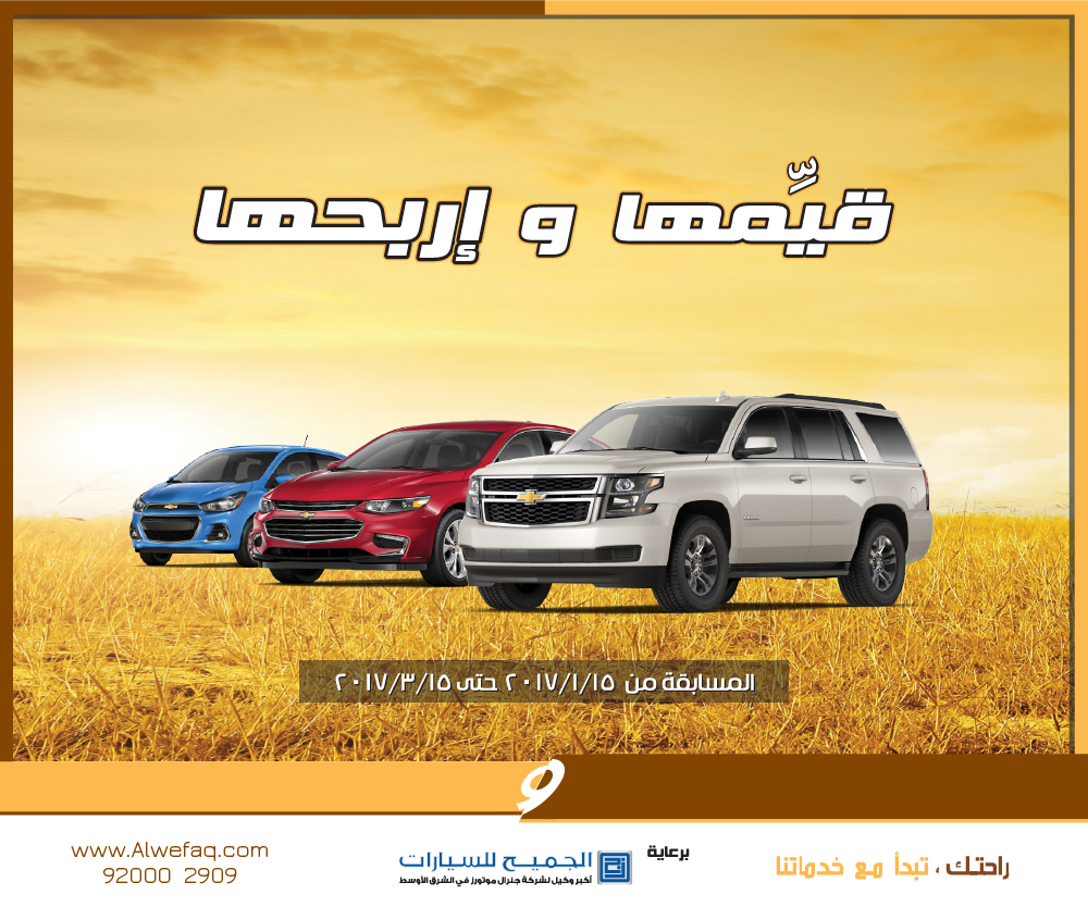 شارك في مسابقة قيمها واربح لفرصة ربح 4 سيارات مقدمة من الوفاق لتأجير السيارات موجز المسابقات والمجانيات