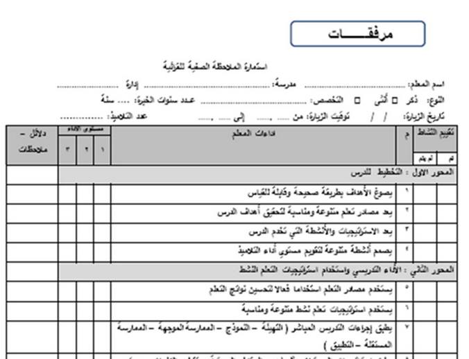 تقويم الأداء الوظيفي للمعلم Pdf نموذج تقويم أداء المعلم داخل الفصل برابط مباشر