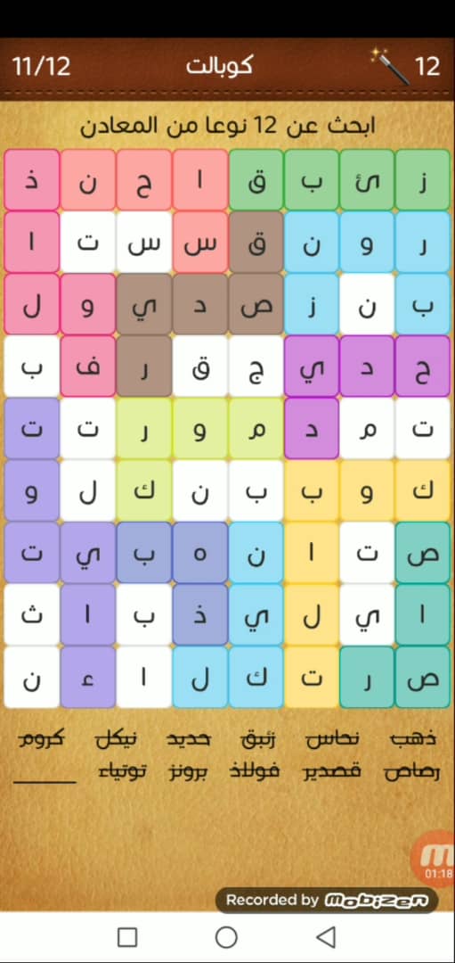 ابحث عن 12 نوعا من المعادن خطوات محلوله